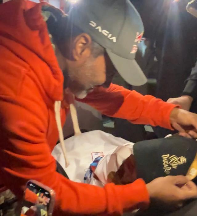 在当晚举行的 SS12 赛段颁奖中,心情格外高兴的阿提亚将刚刚接过的奖牌送给了台下的一位残疾人车迷。