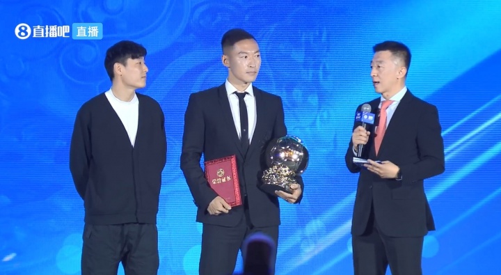 stake-五届“中国金球奖”得主武磊为两届“中国金球奖”吴曦颁奖